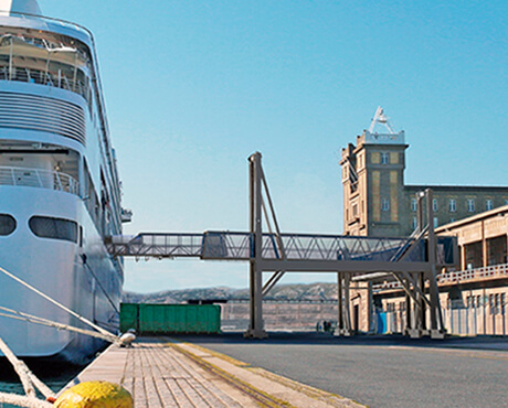 Ports Normands Associés adjudicó a ADELTE un contrato para diseñar, fabricar e instalar un innovador sistema de embarque que se integra perfectamente con la terminal arquitectónica protegida de pasajeros de Cherburgo, la conocida Gare Maritime Transatlantique. Para este proyecto, ADELTE diseñó un puente de embarque de pasajeros en el puerto marítimo muy singular. Basado en un modelo SEDNA, la SPBB reemplaza a su predecesora, también clasificada como monumento histórico. El puente de embarque de pasajeros mejora la operatividad, la flexibilidad y garantiza que todos los cruceros, incluidos los mega cruceros, operen en las mejores condiciones.